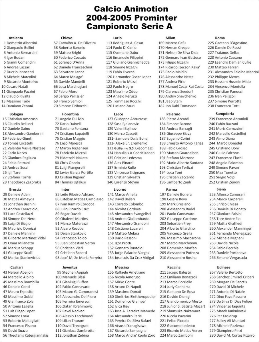 Calcio Animotion 2004'05 campiano serie A Animated Card Game