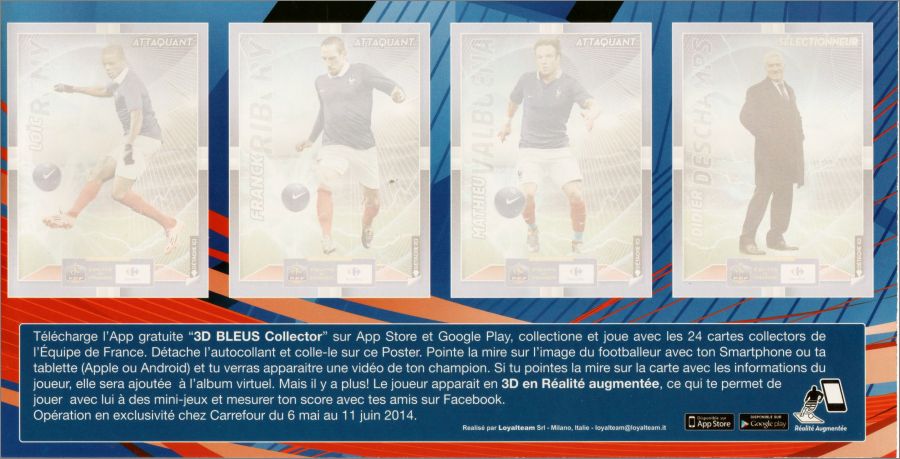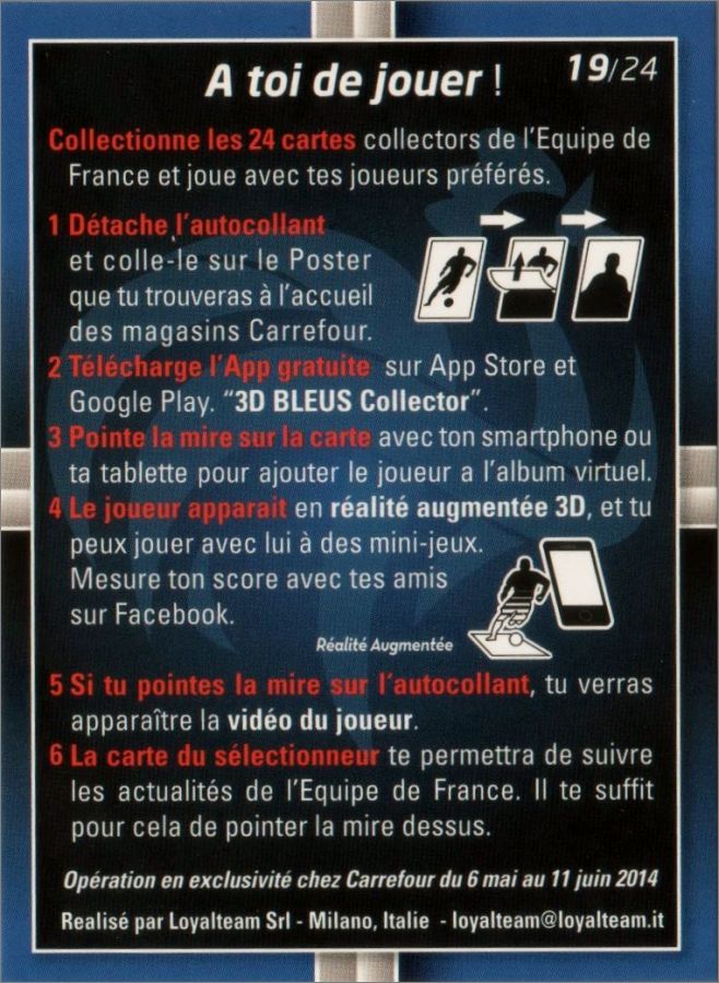 Grâce à vos cartes, retrouvez les Bleus en réalité augmentée sur votre smartphone ! Jouez avec l'avatar de chaque joueur et retrouvez des interviews vidéos, des actus et des surprises !Lien vers les explications :