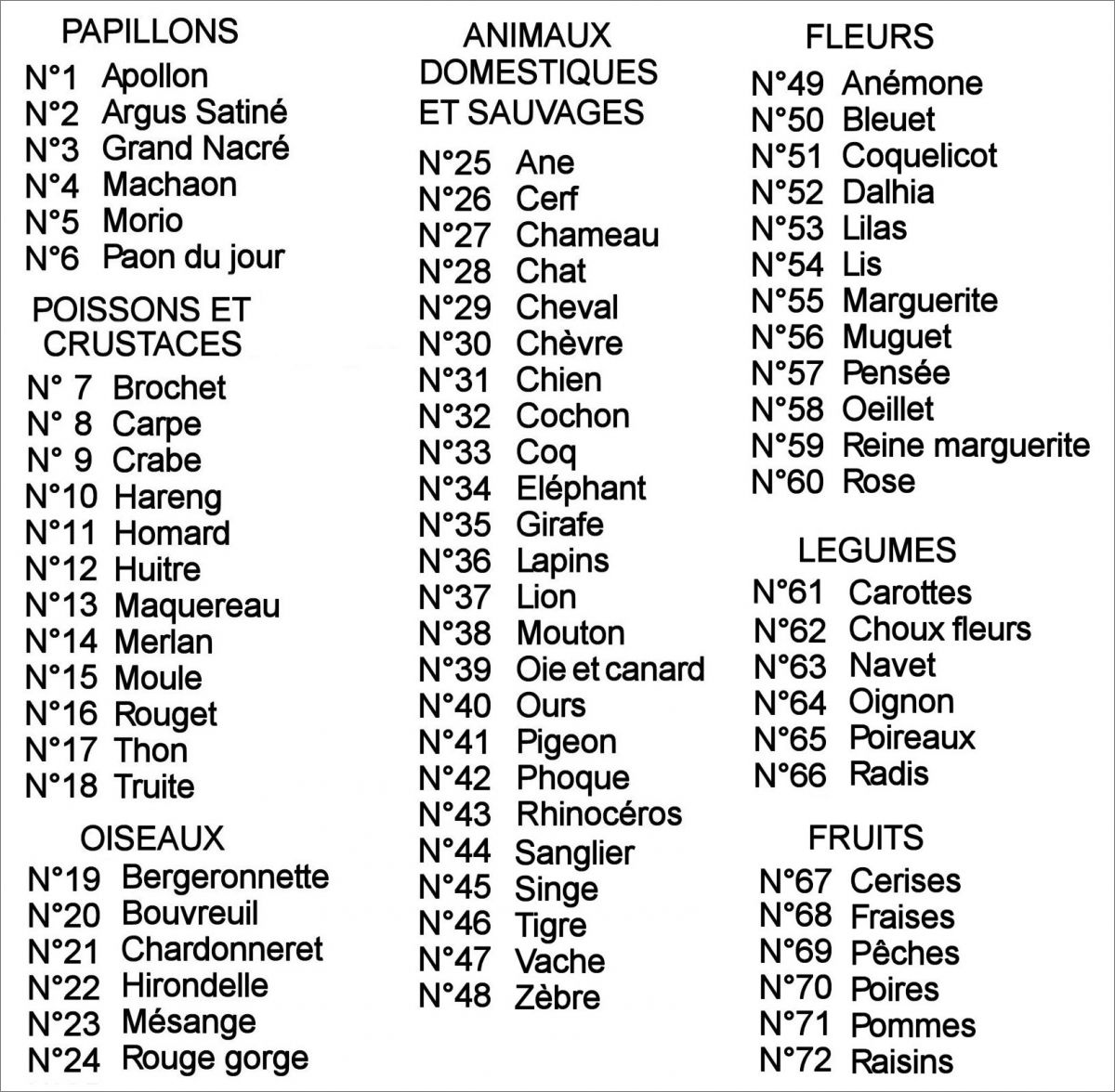 Desserts Ancel : 1 à 72 (Suivre la numérotation sur la liste)