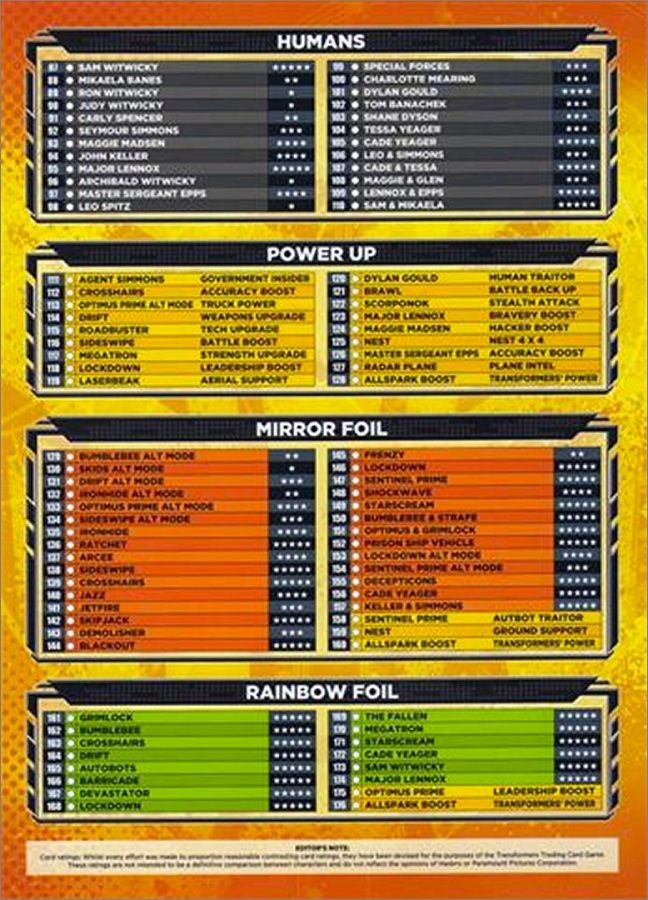 Transformers 4 l'âge de l'extinction Tradings cards - Topps