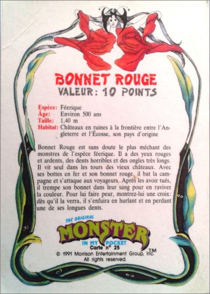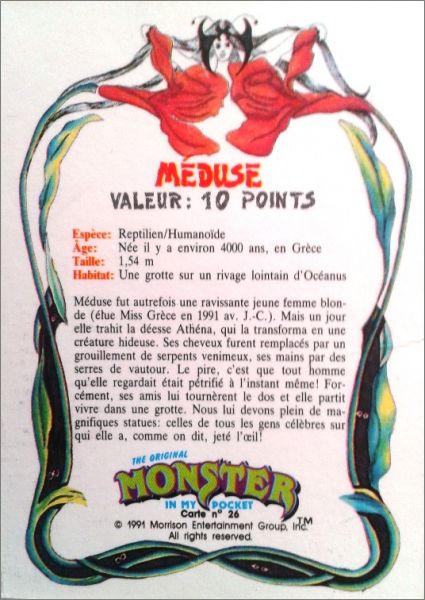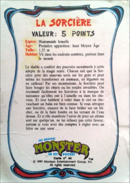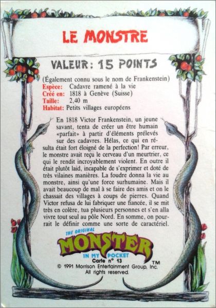 Cette collection est également paru aux USA et au Canada, le descriptif du monstre est en anglais au dos des cartes et le nom du monstre est inscrit au-dessus de sa "photo".