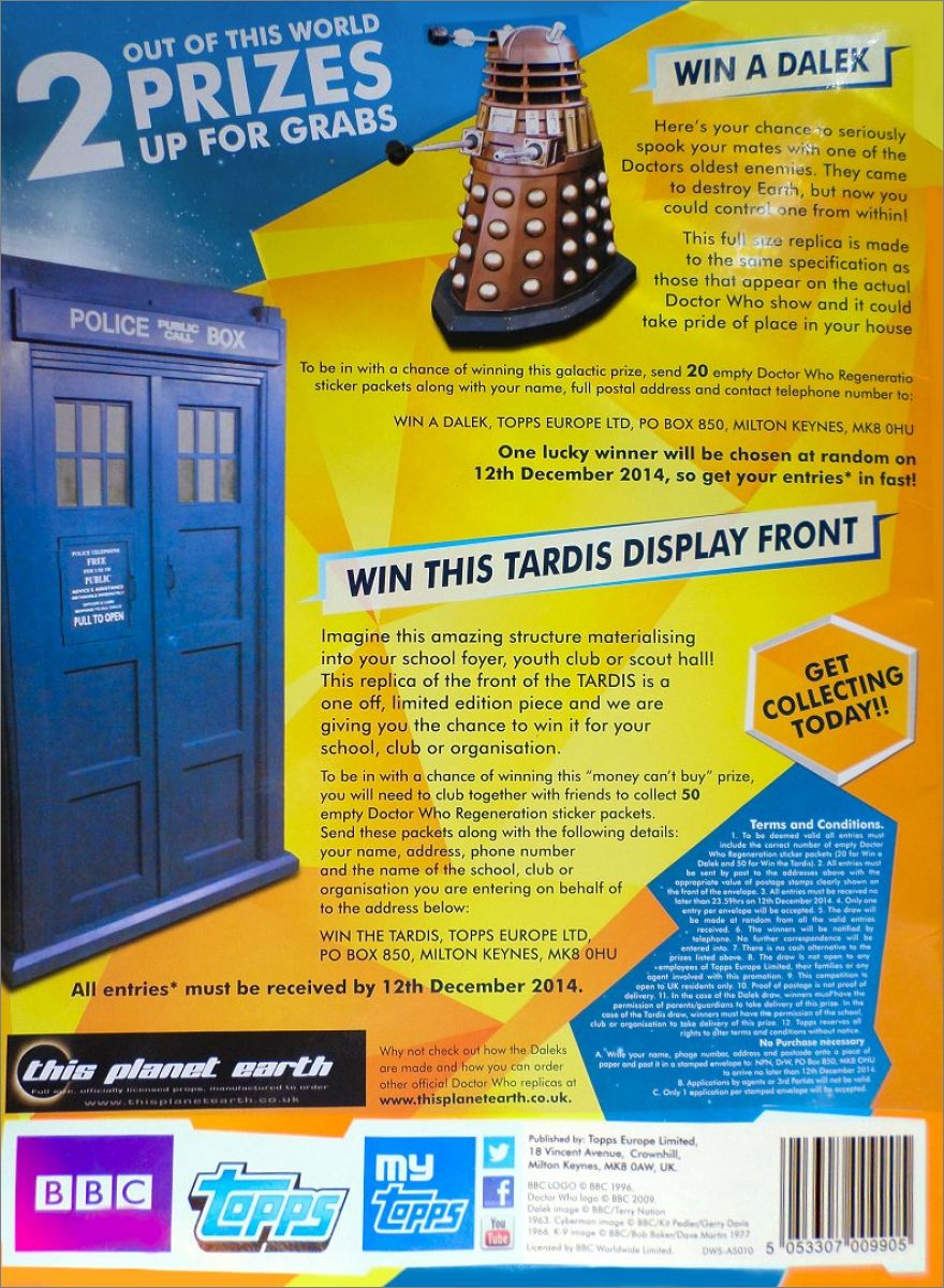 Doctor Who - Régénération - Sticker Topps - Angleterre 2014