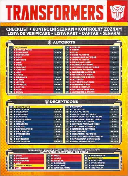 Transformers 4 l'âge de l'extinction Tradings cards -Pologne