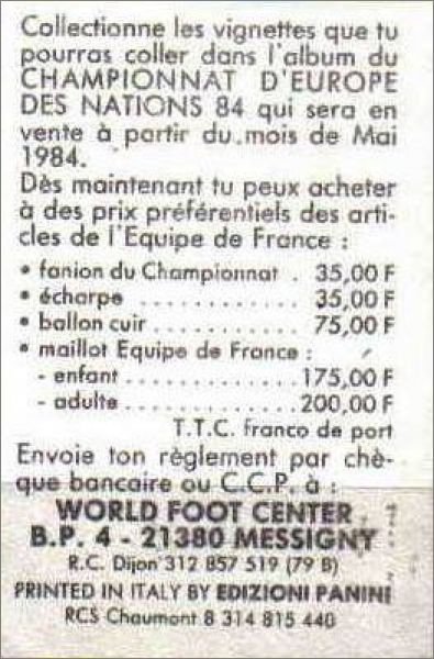 Il est écrit au dos des images, qu'elles pourront être collées dans l'album à paraître. Mais lorsque l'album Euro 84 de Panini est sorti, les stickers avaient un design différent de cette série.