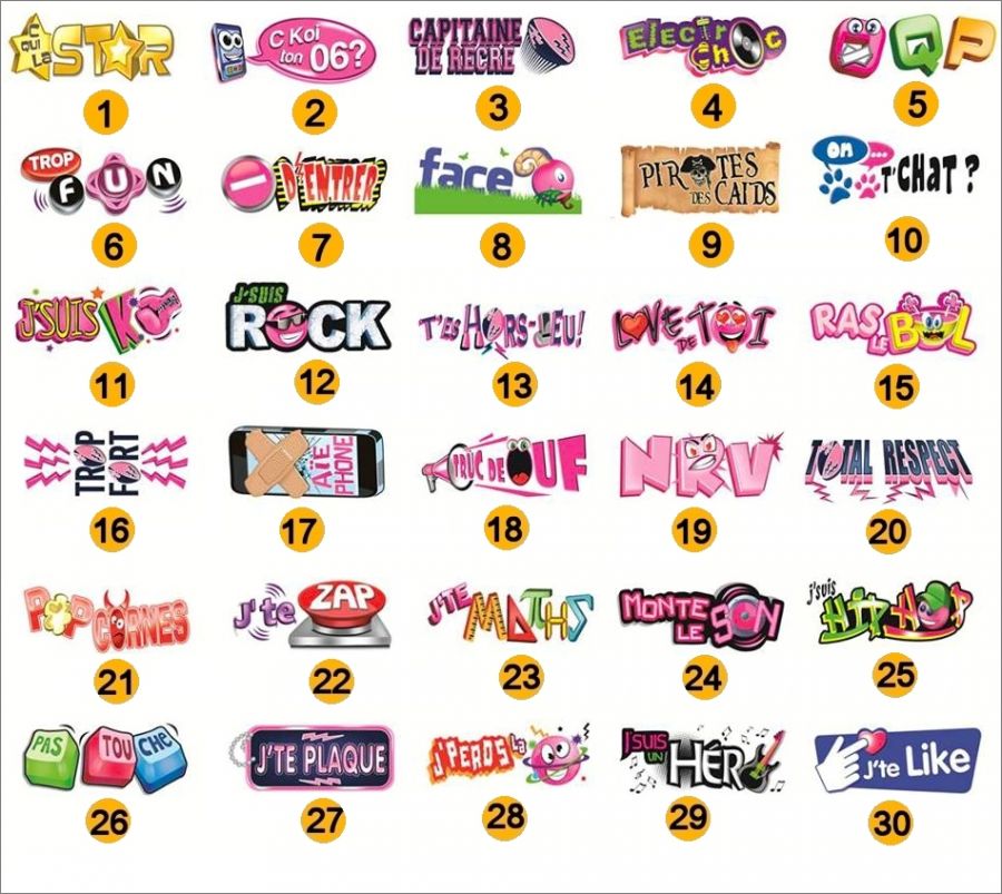 Malabar : 1 à 30 (suivre la numérotation sur l'image)