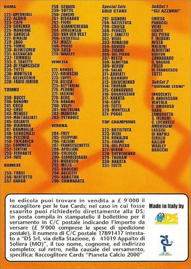 Pianeta Calcio Cards 2000 - DS Sticker collections - Italie
