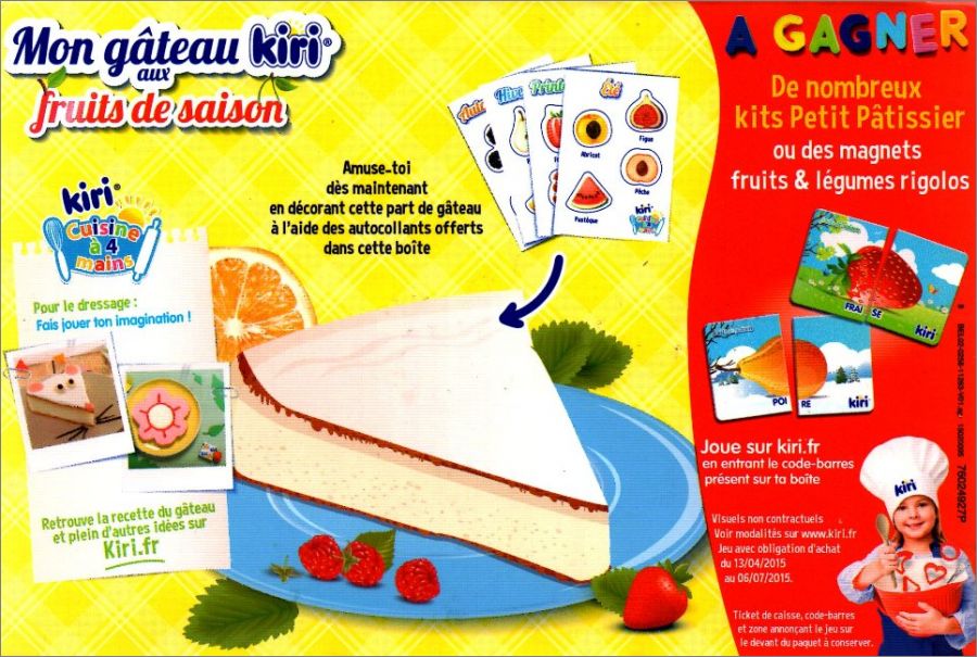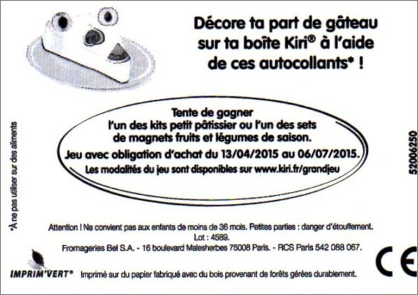 Les images sont à coller sur la part de gâteau dessinée au dos des boîtes Kiri portions.