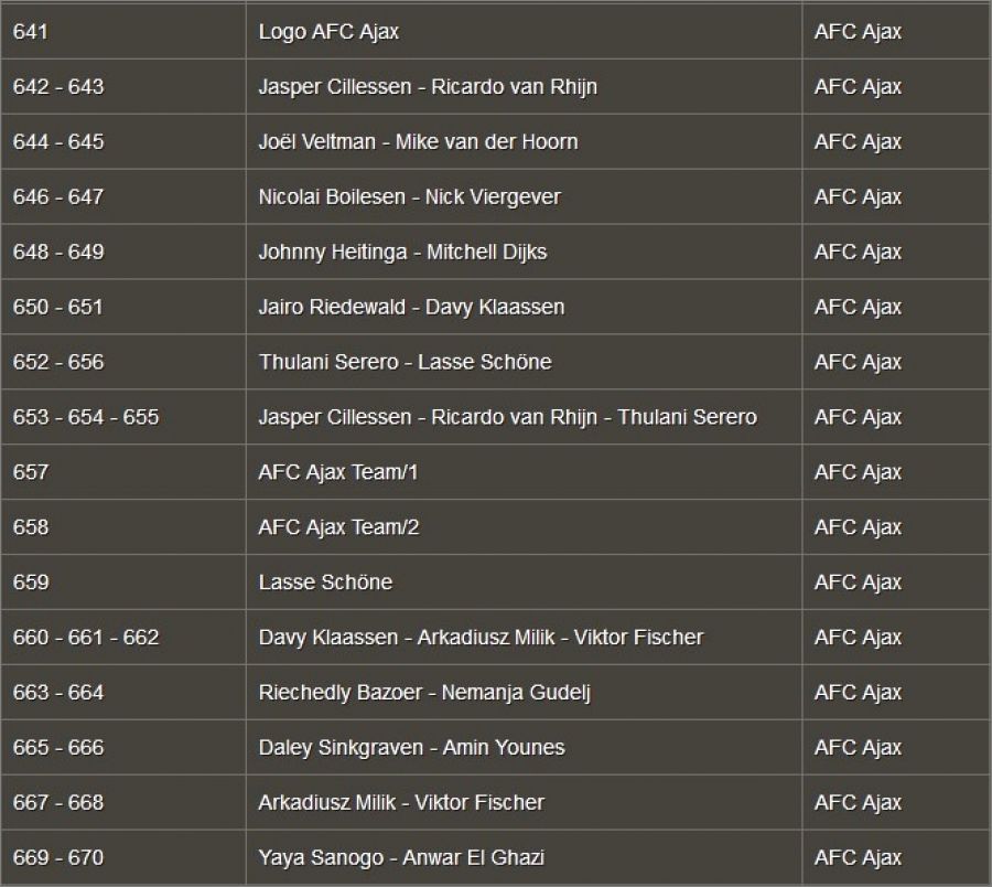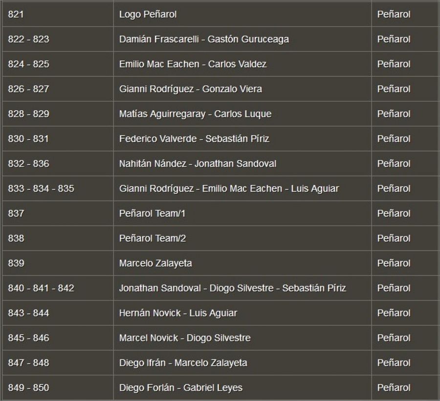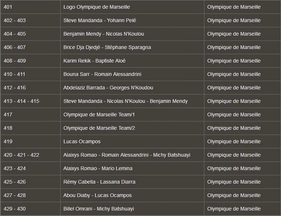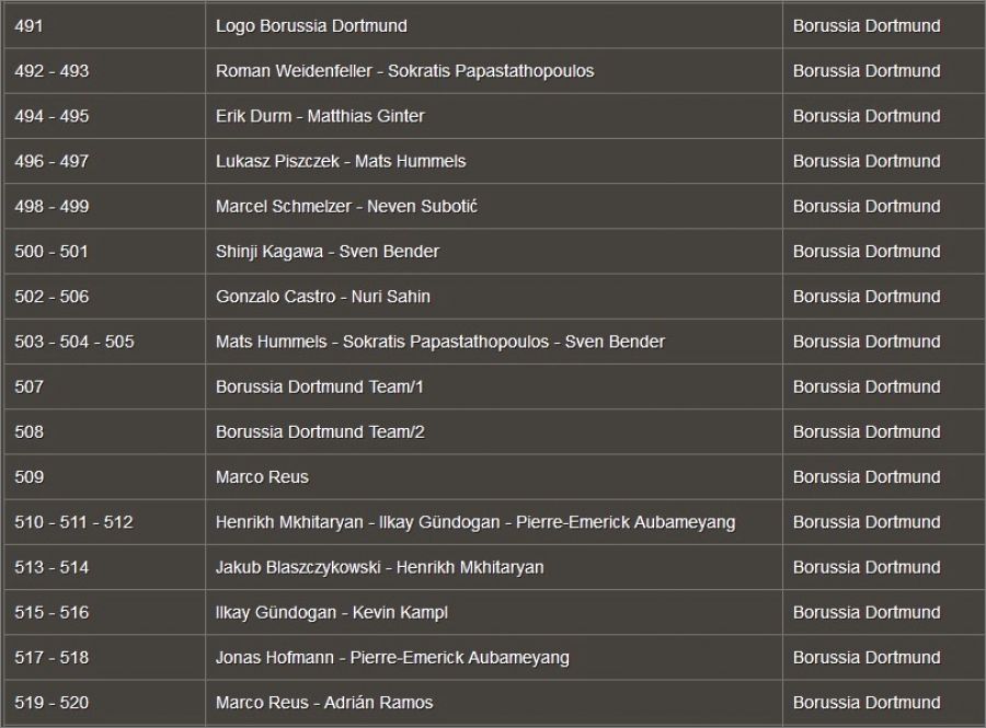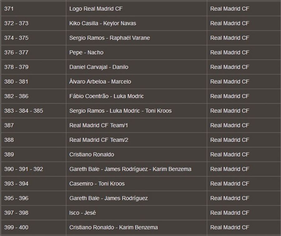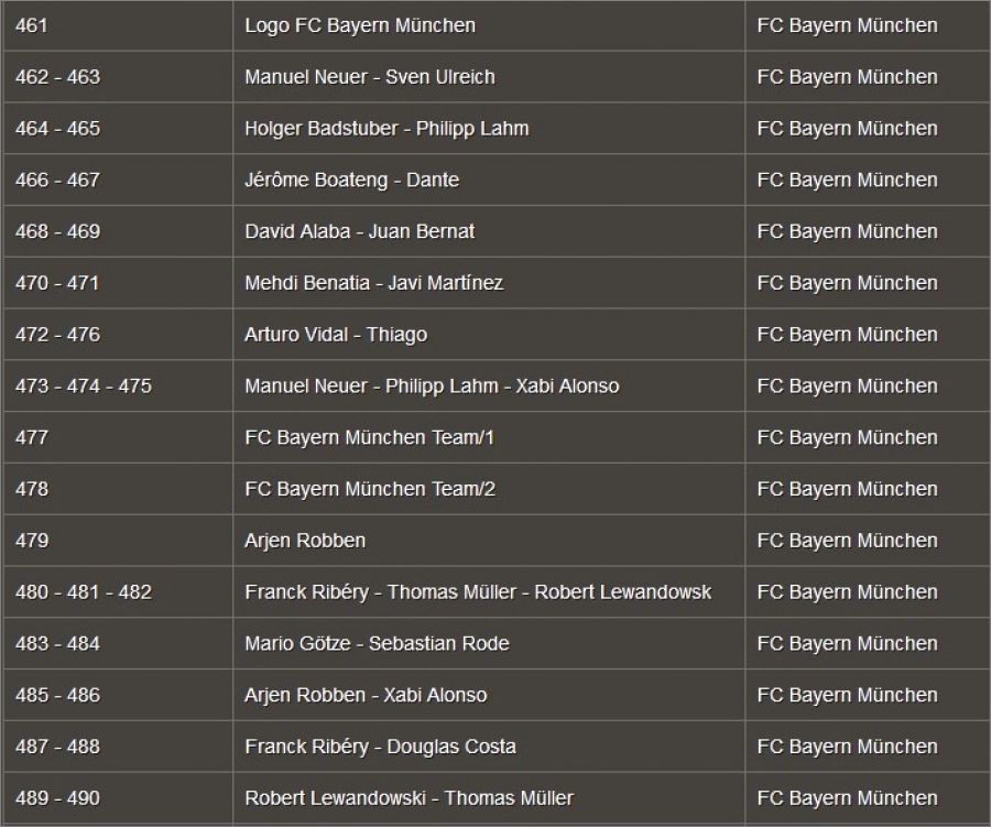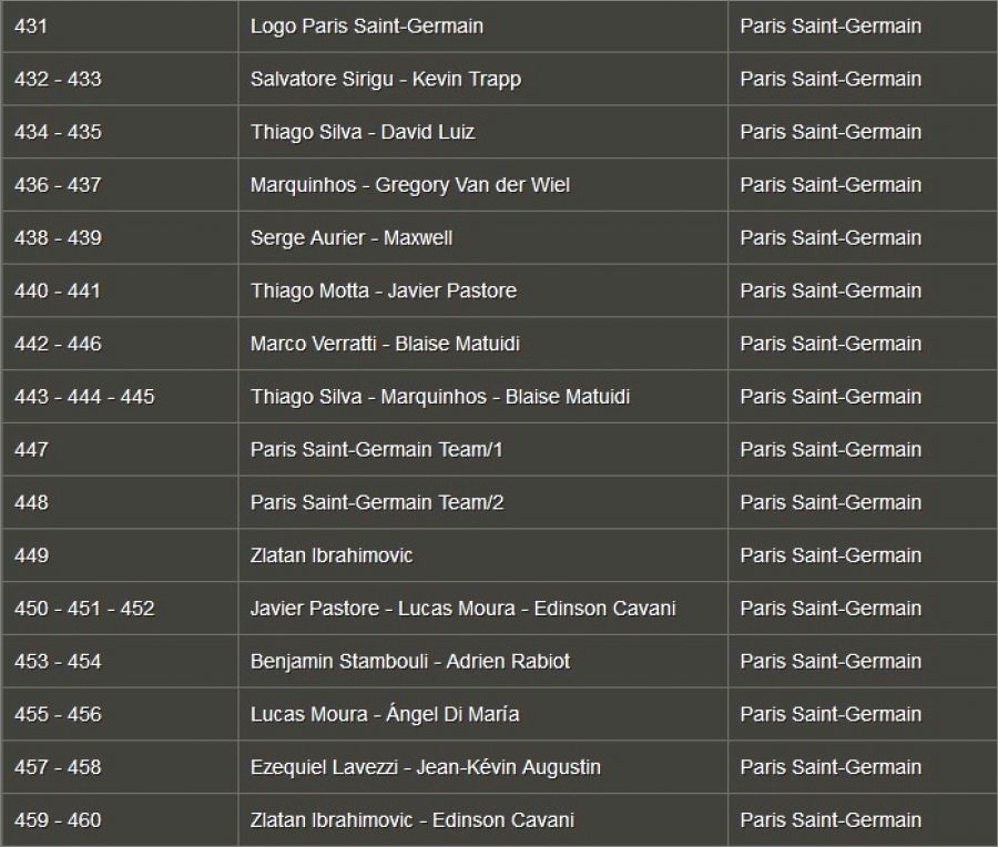 Images "3 joueurs" à liseré doré. *dor : 83-84-85, 90-91-92, 113-14-115, 120-21-122, 143-44-145, 150-51-152, 173-74-175, 180-81-182, 203-04-205, 210-11-212, 233-34-235, 240-41-242, 263-64-265, 270-71-272, 293-94-295, 300-01-302, 323-24-325, 330-31-332, 353-54-355, 360-61-362, 383-84-385, 390-91-392, 413-14-415, 420-21-422, 443-44-445, 450-51-452, 473-74-475, 480-81-482, 503-04-505, 510-11-512, 533-34-535, 540-41-542, 563-64-565, 570-71-572, 593-94-595, 600-01-602, 623-24-625, 630-31-632, 653-54-655, 660-61-662, 683-84-685, 690-91-692, 713-14-715, 720-21-722, 743-44-745, 750-51-752, 773-74-775, 780-81-782, 803-04-805, 810-11-812, 833-34-835, 840-41-842