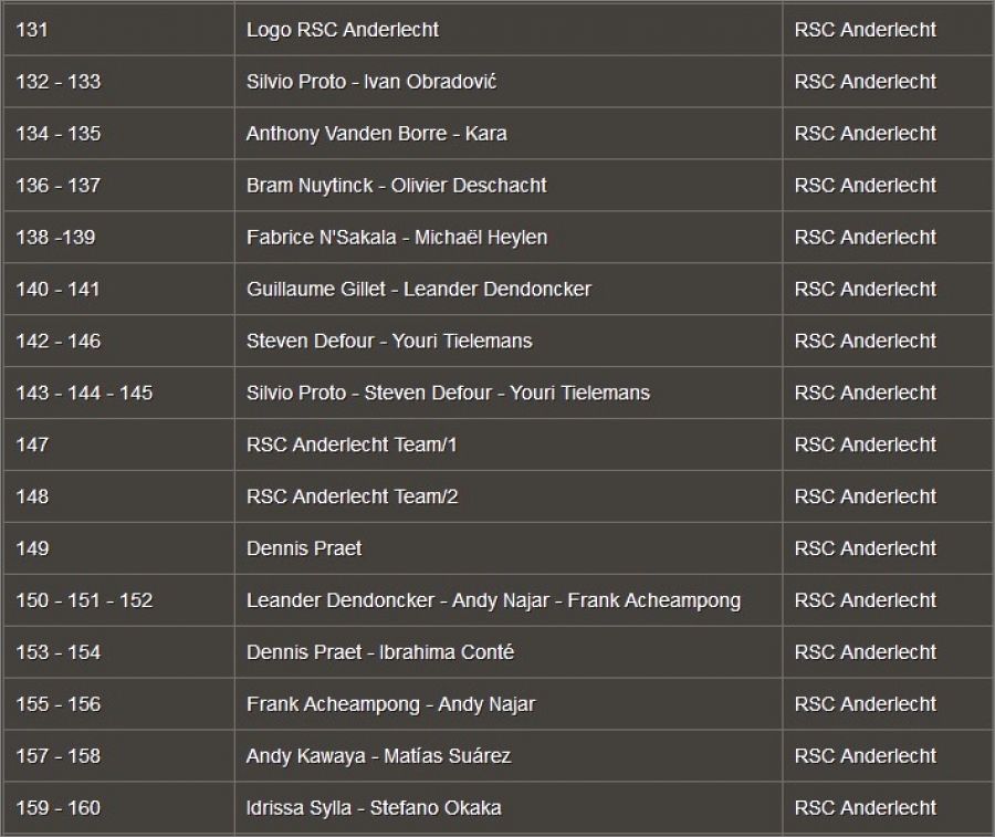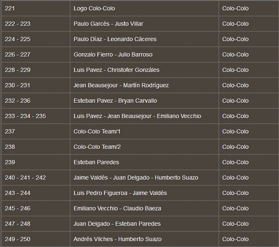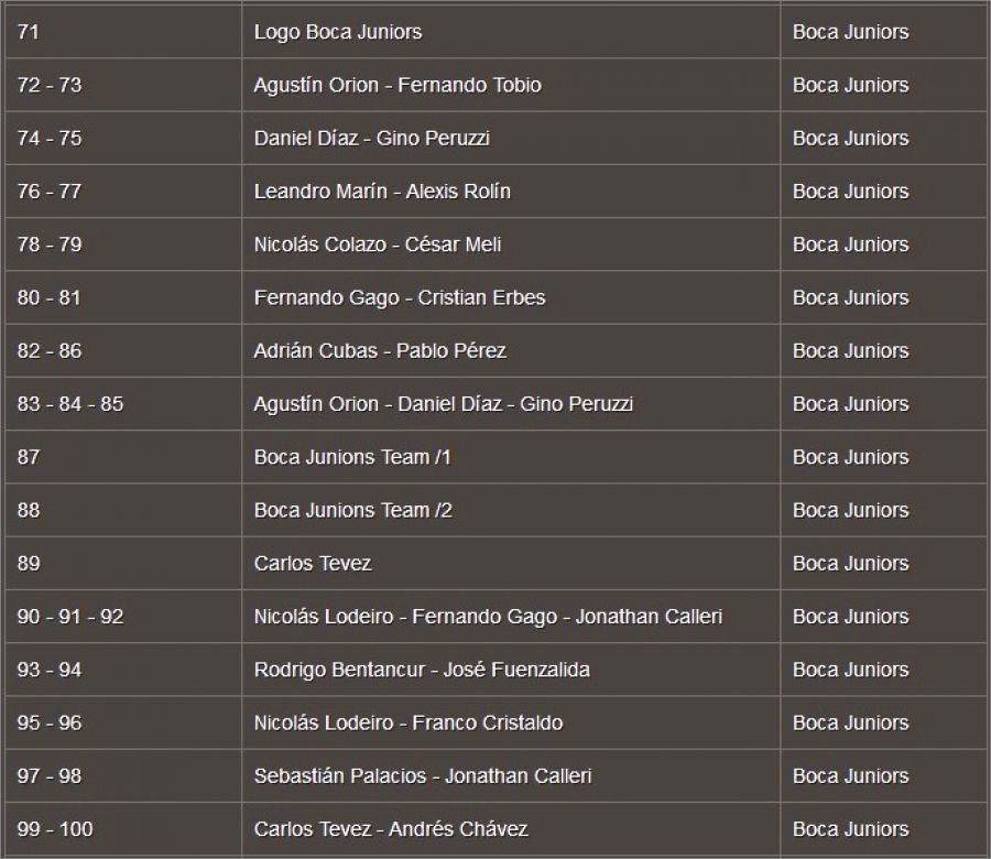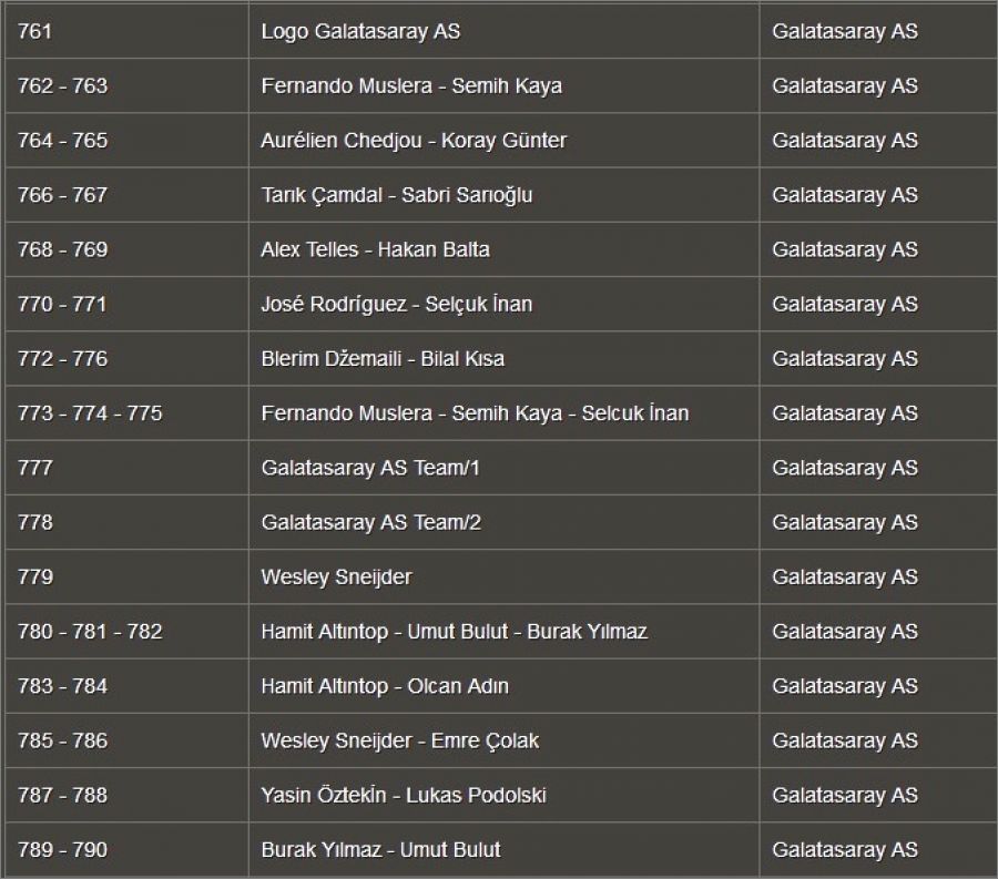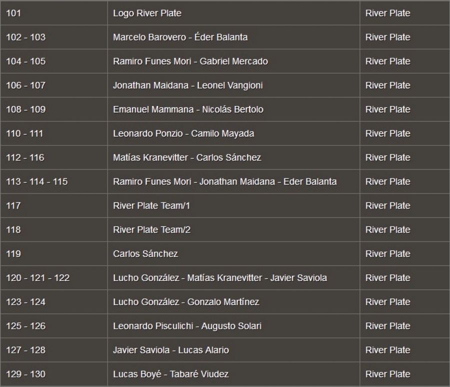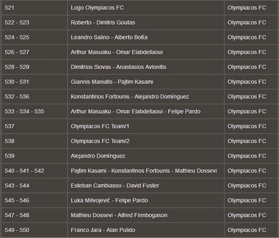 Images "3 joueurs" à liseré doré. *dor : 83-84-85, 90-91-92, 113-14-115, 120-21-122, 143-44-145, 150-51-152, 173-74-175, 180-81-182, 203-04-205, 210-11-212, 233-34-235, 240-41-242, 263-64-265, 270-71-272, 293-94-295, 300-01-302, 323-24-325, 330-31-332, 353-54-355, 360-61-362, 383-84-385, 390-91-392, 413-14-415, 420-21-422, 443-44-445, 450-51-452, 473-74-475, 480-81-482, 503-04-505, 510-11-512, 533-34-535, 540-41-542, 563-64-565, 570-71-572, 593-94-595, 600-01-602, 623-24-625, 630-31-632, 653-54-655, 660-61-662, 683-84-685, 690-91-692, 713-14-715, 720-21-722, 743-44-745, 750-51-752, 773-74-775, 780-81-782, 803-04-805, 810-11-812, 833-34-835, 840-41-842