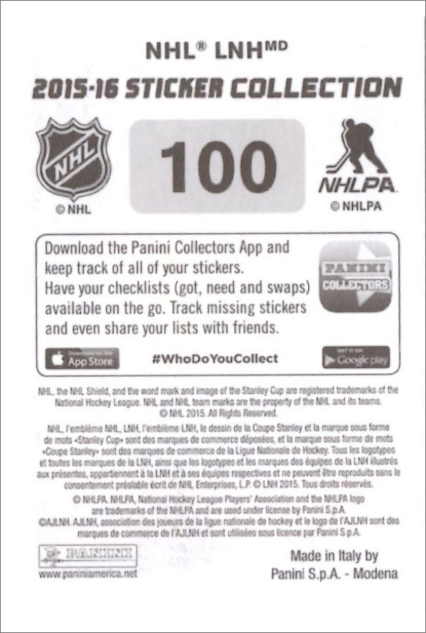 Hockey 2015-16 NHL LNH - Album sticker Panini - USA / Canada