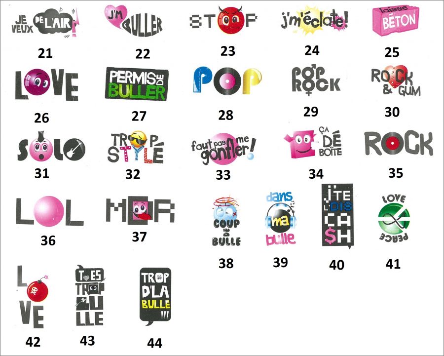 Malabar : 1 à 44 (suivre la numérotation sur l'image)