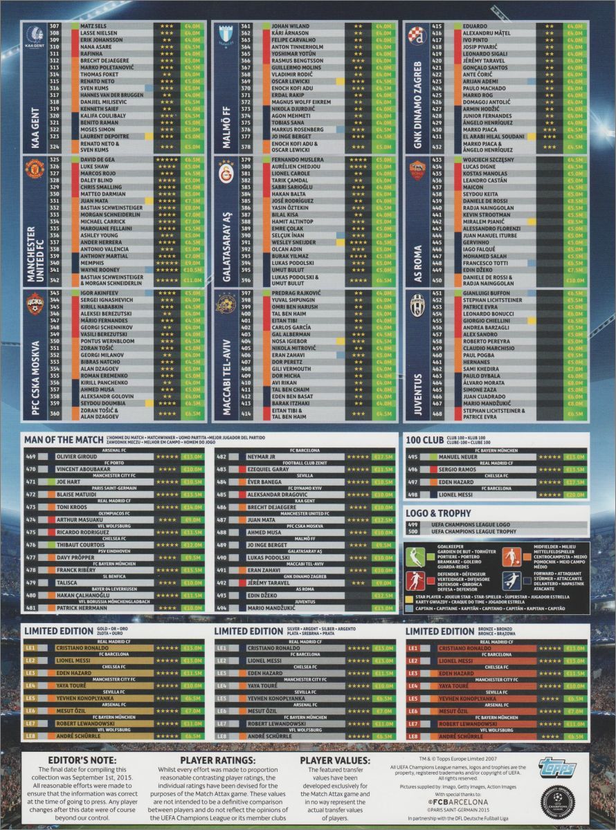 Match Attax UEFA League 2015/16 - Cards (1 sur 2) - Polonais