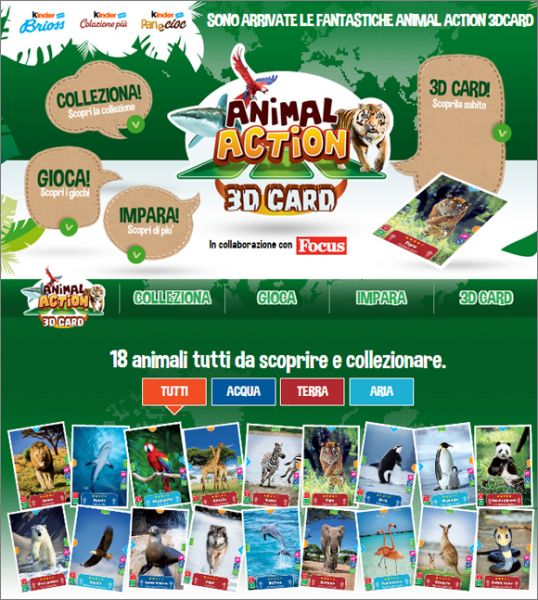 Animal Action 3D cartes - Kinder Ferrero - Italie
