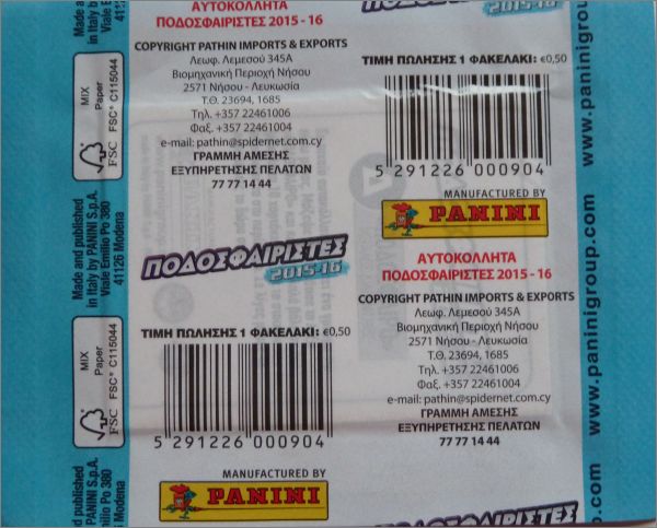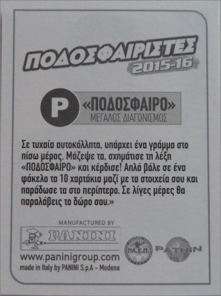 Podosfairistes 2015-16 - Cyprus (Chypre) - Panini - Pathin