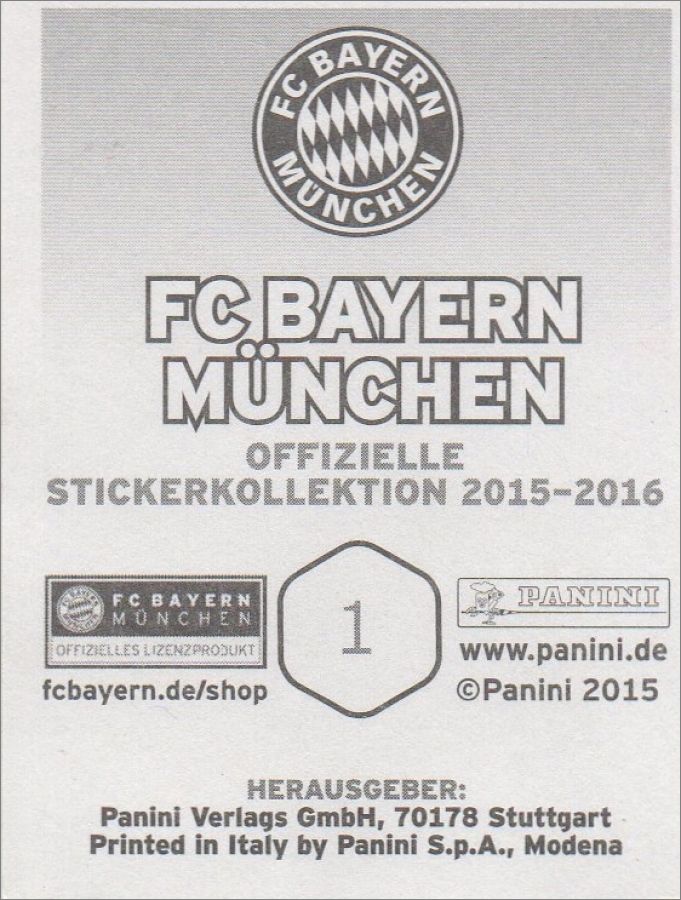FC Bayern München 2015 - 2016 - Panini - Allemagne