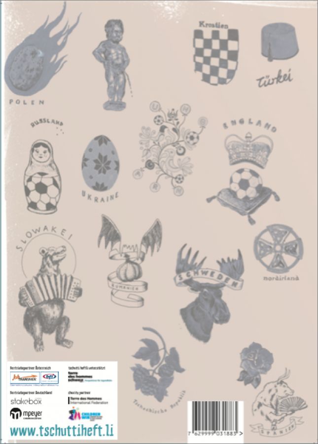 25, numérotés de 1/25 à 25/25, qui représentent des écussons différents des 24 nations qualifiées (dans l'ordre alphabétique allemand) + le logo Tschutti