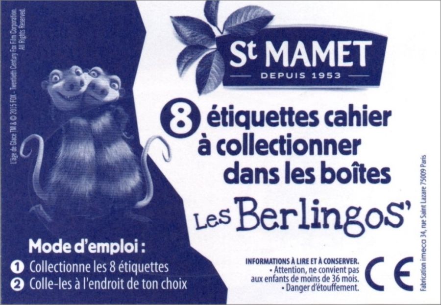 Berlingos Animos - 8 Etiquettes Age de Glace - St Mamet 2016