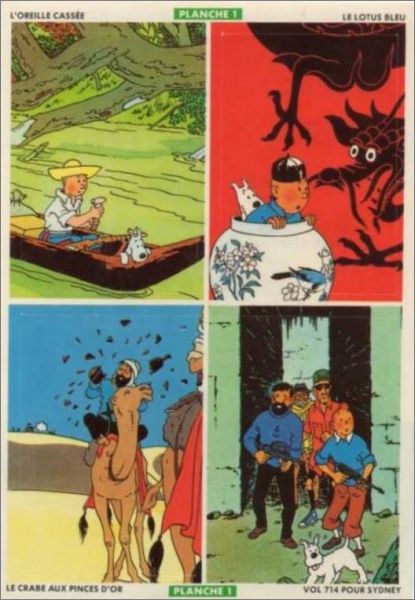 Planche 1 : l'oreille cassée - le lotus bleu - le crabe aux pinces d'or - vol 714 pour Sydney