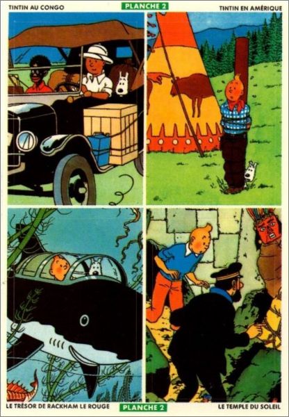 Planche 2 : Tintin au congo - Tintin en amérique - Le trésor de Rackham le rouge - Le temple du soleil