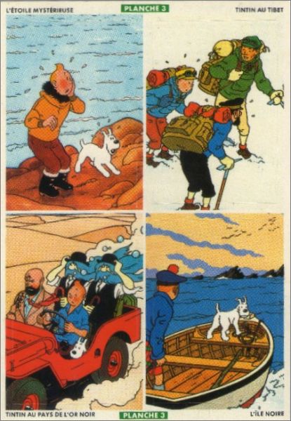 Planche 3 : L'étoile mystérieuse - Tintin au Tibet - Tintin au pays de l'or noire - L'île noire