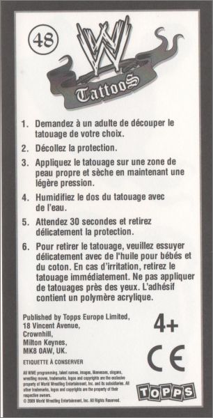 Collection de 106 tatouages répartis en 48 planches numérotées.