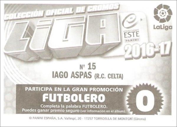 LIGA 2016 - 2017 - Este (1ère partie) Panini - Espagne