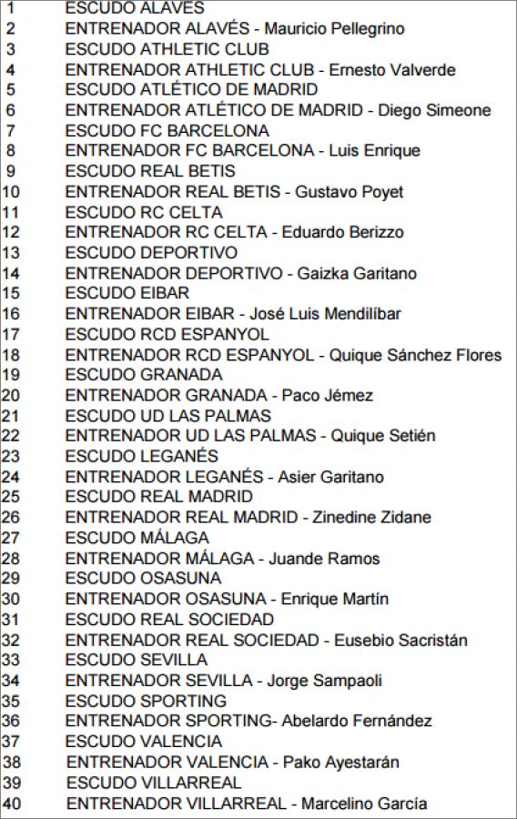 Este - Panini : Escudos / Entrenadores, Alavés à UD Las Palmas