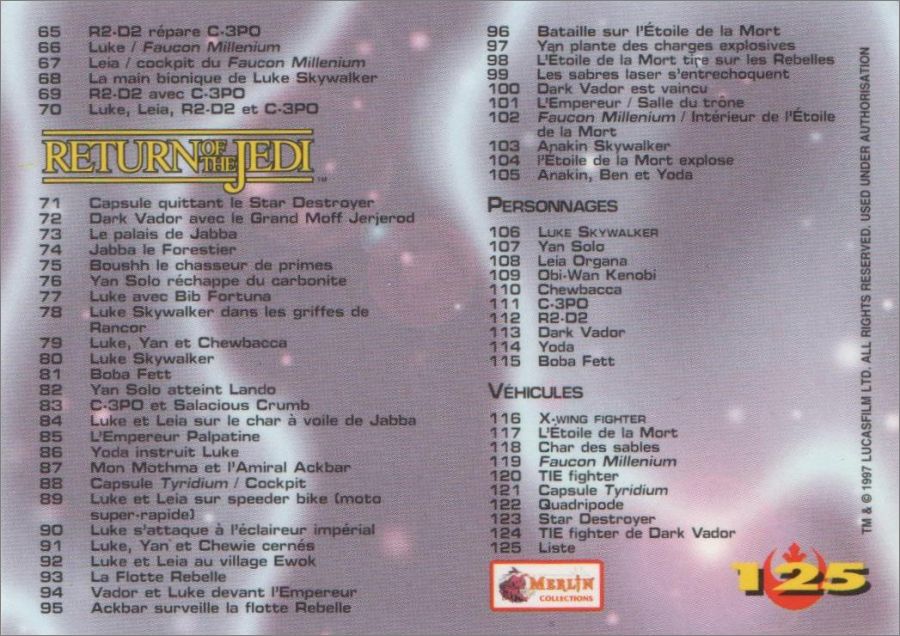 Star Wars - Trilogy Collection - Movie Trad Cards - Français
