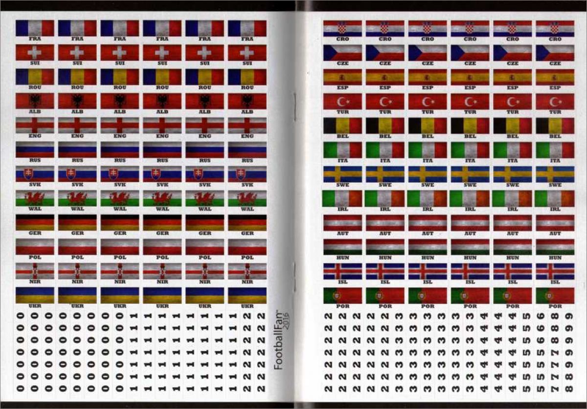 L'album est de format A5. On y trouve un encart central contenant des stickers "drapeaux" et "chiffres", à coller sur les pages de l'album relatives aux matchs joués.