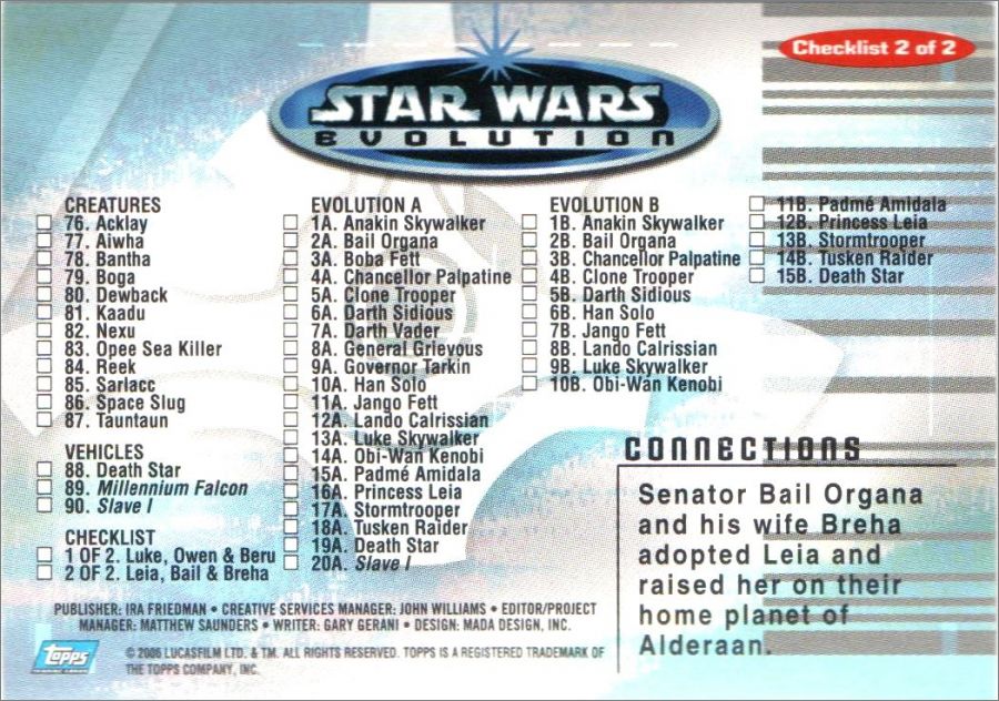 Star Wars Evolution II - Cards - Topps 2006 - Angleterre