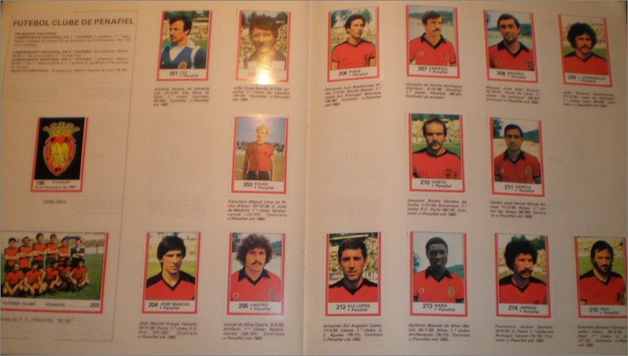 Les équipes ne sont pas présentées par ordre alphabétique mais en fonction de leur classement de l'année précédente. Ce sont donc Benfica, Porto et le Sporting qui ouvrent l'album : 16 images toutes petites et rondes présentant le visage des joueurs.