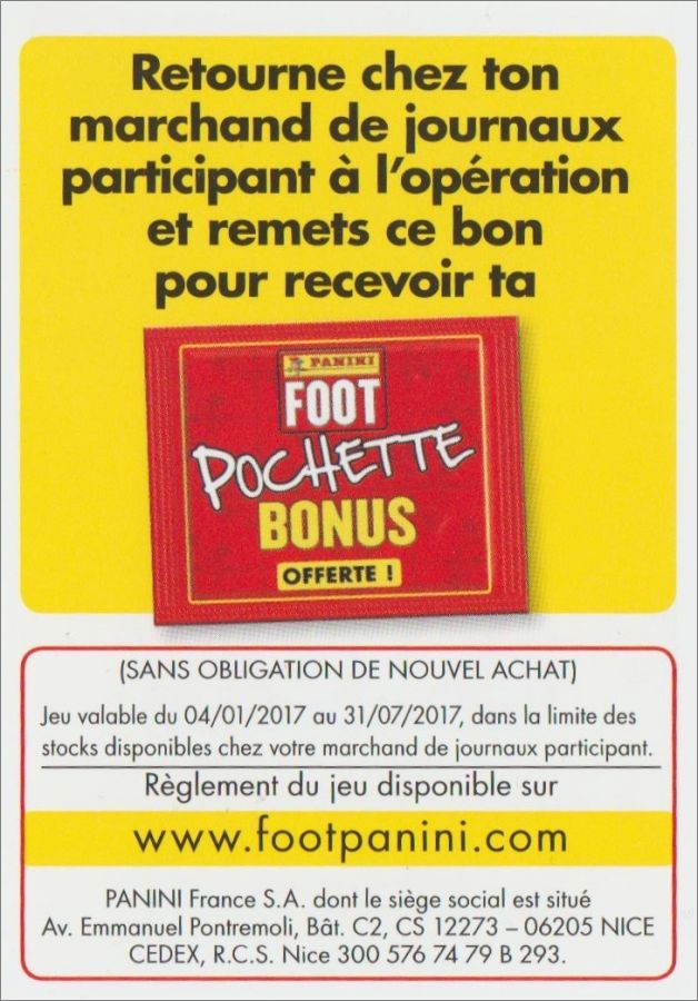 dans certains paquets vous trouverez un coupon pochette bonus offerte, a remettre à votre vendeur.