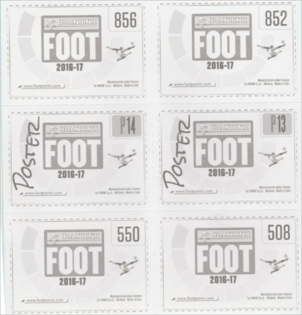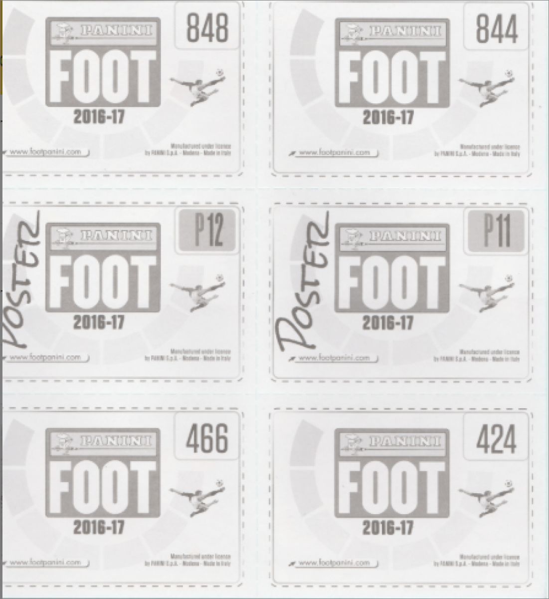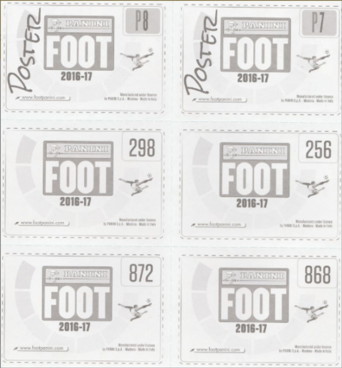 Panini : 1 à 922 (542 images effectives), P1 à P20, T1 à T12, S1 à S12
