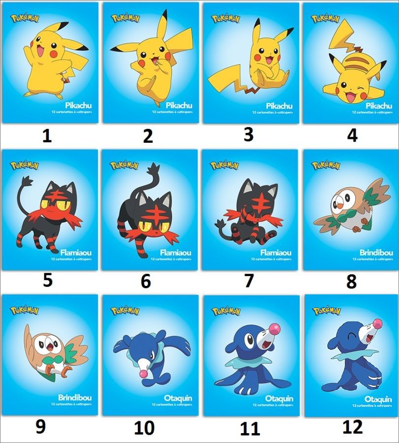 12 cartes à collectionner, non numérotées. Merci de suivre la numérotation de la photo ci-dessous.