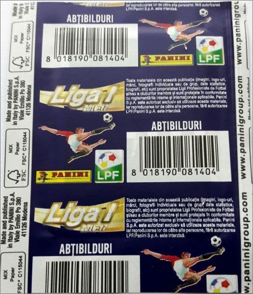 Liga 1 Orange 2016 - 17 - Sticker album Panini - Roumanie