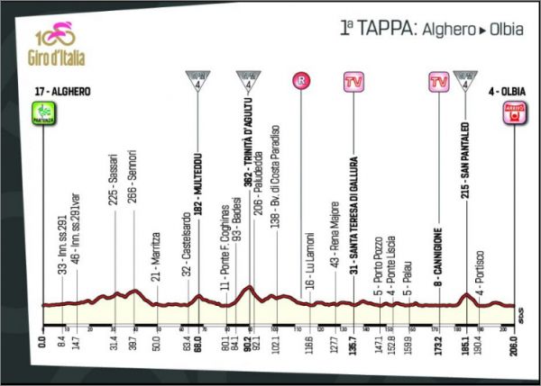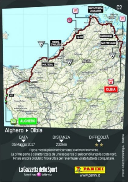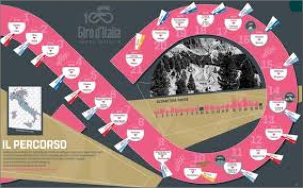 Le tour d'Italie 2017 qui débutera le vendredi 5 mai 2017, partira de Alghero et se terminera à Milan le 28 mai.