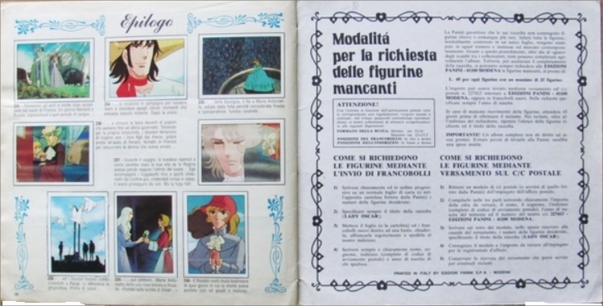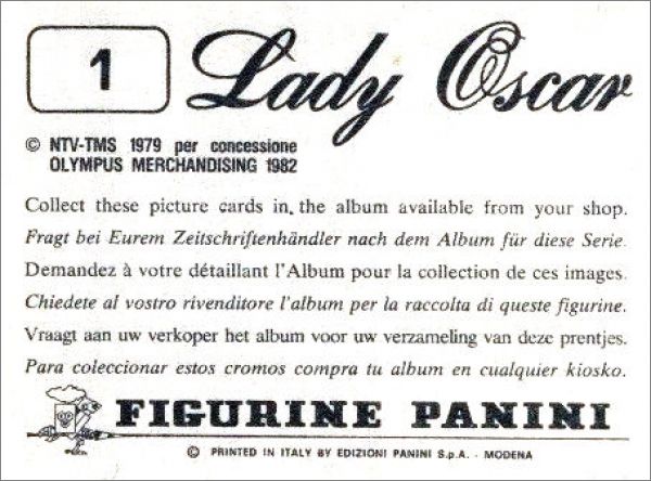 Lady Oscar - Sticker Album Figurine Panini - 1982 - Italie