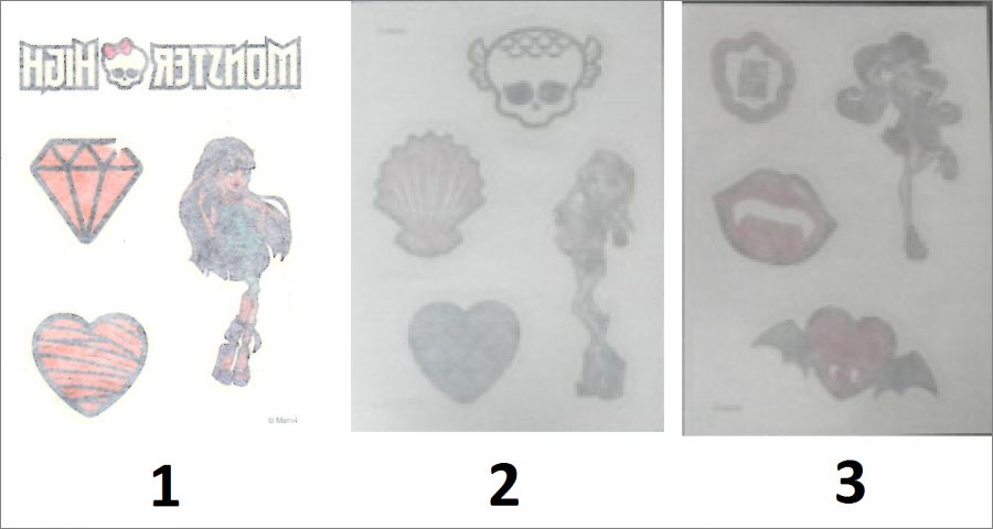 Glaces Rolland : 3 planches de tatouages (cf description)