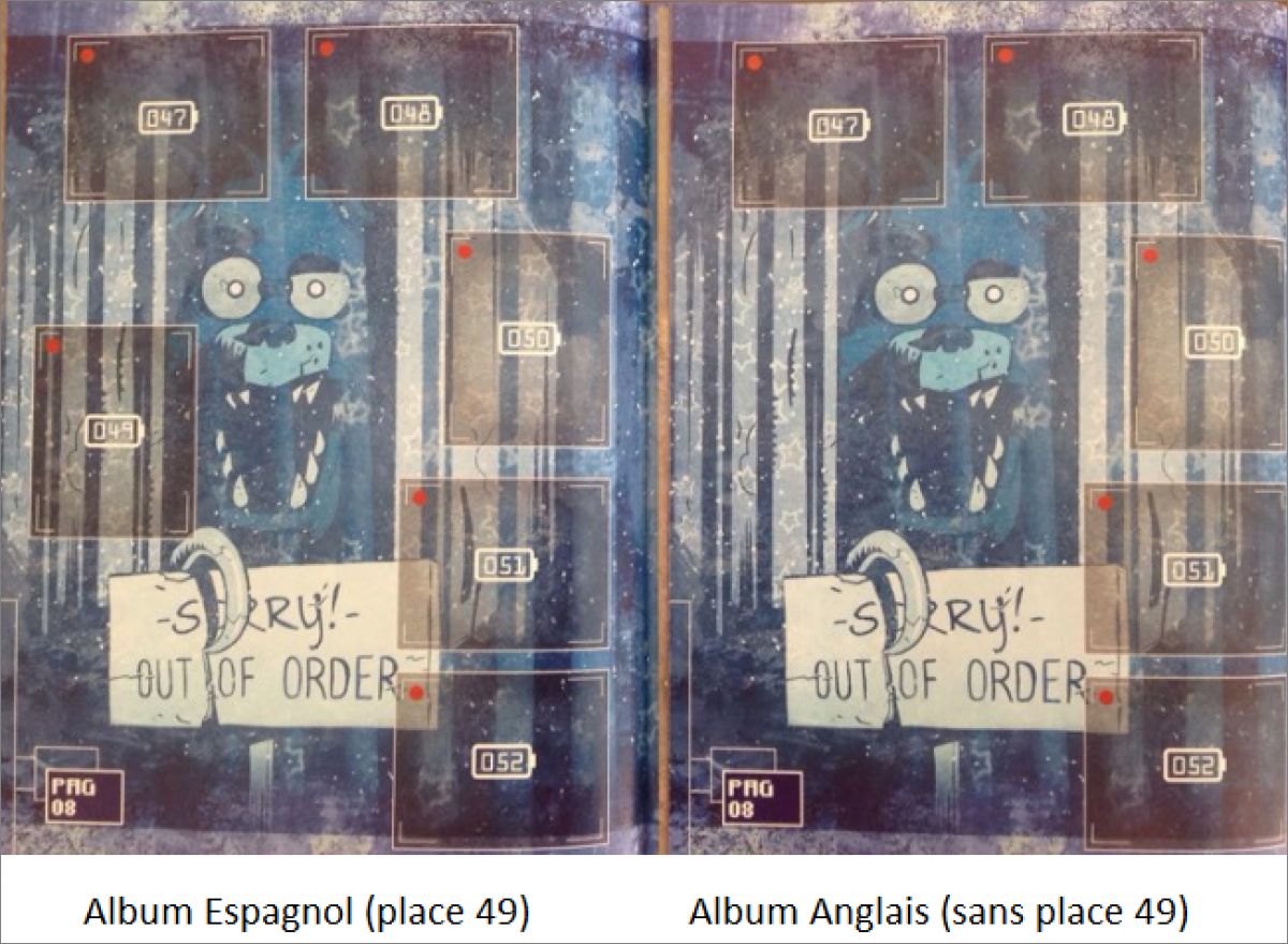 Pour l'album espagnol, vous pouvez coller le sticker n°49 à l'emplacement prévu, même s'il n'est pas signalé, en vous fiant à l'emplacement de l'album GB (voir photo)