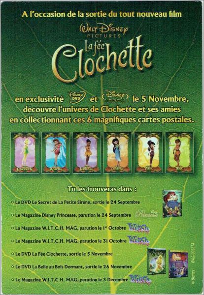 La Fée Clochette - Walt Disney - 6 cartes postales - 2008