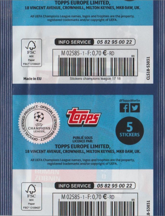 UEFA Champions League 2017 / 18 - Topps (partie 1) Sticker