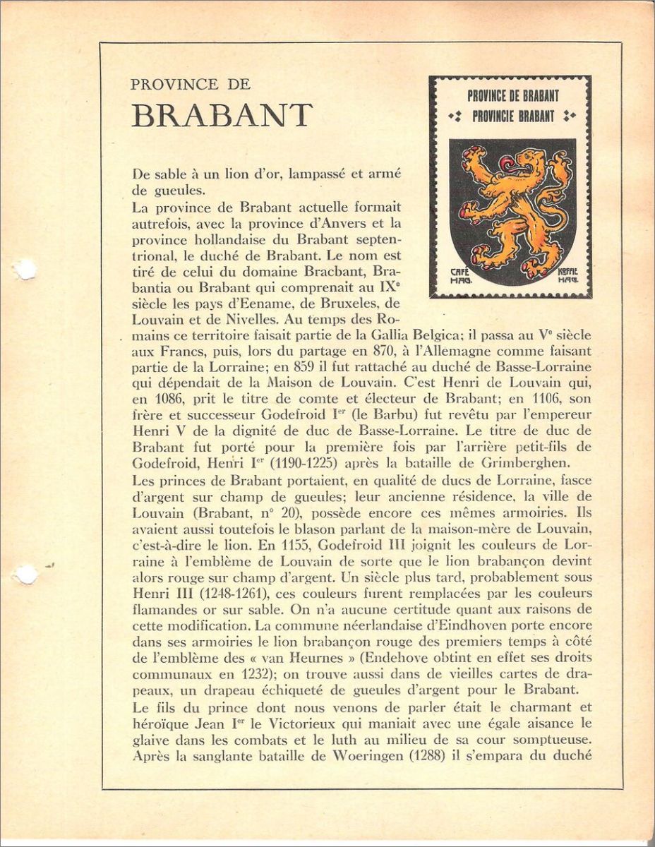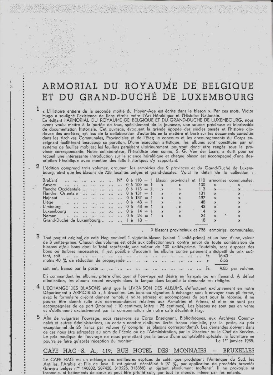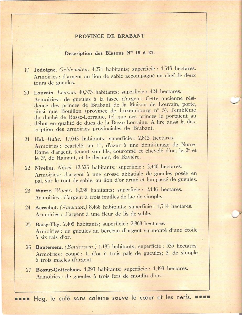 détail : 747 chromos, 9 blasons provinciaux et 738 armoiries communales et répartis en 3 tomes
