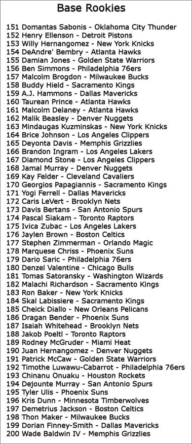 Base Rookies : 201 à 230