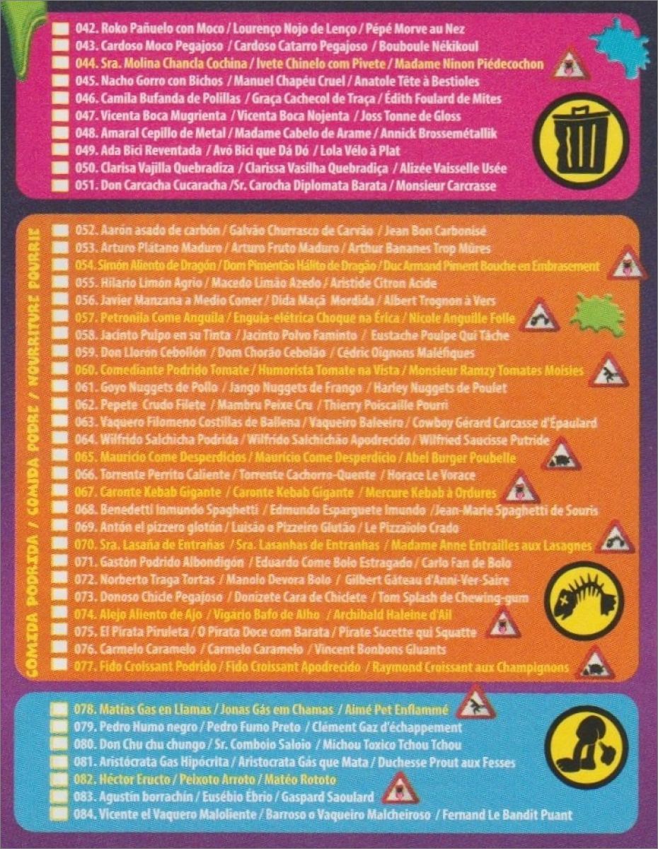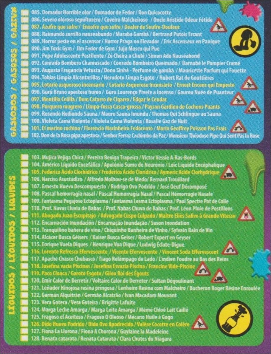 Cartes puantes *pua : 1, 7, 12, 18, 21, 24, 27, 34, 36, 38, 44, 54, 57, 60, 65, 67, 70, 74, 77, 78, 82, 87, 95, 97, 98, 101, 105, 111, 116, 118, 119, 126