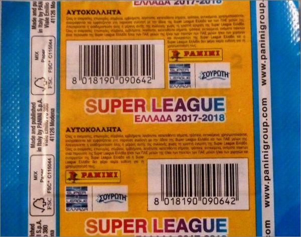 Super League Ellada 2017-2018 - Sticker Album - Panini Grèce