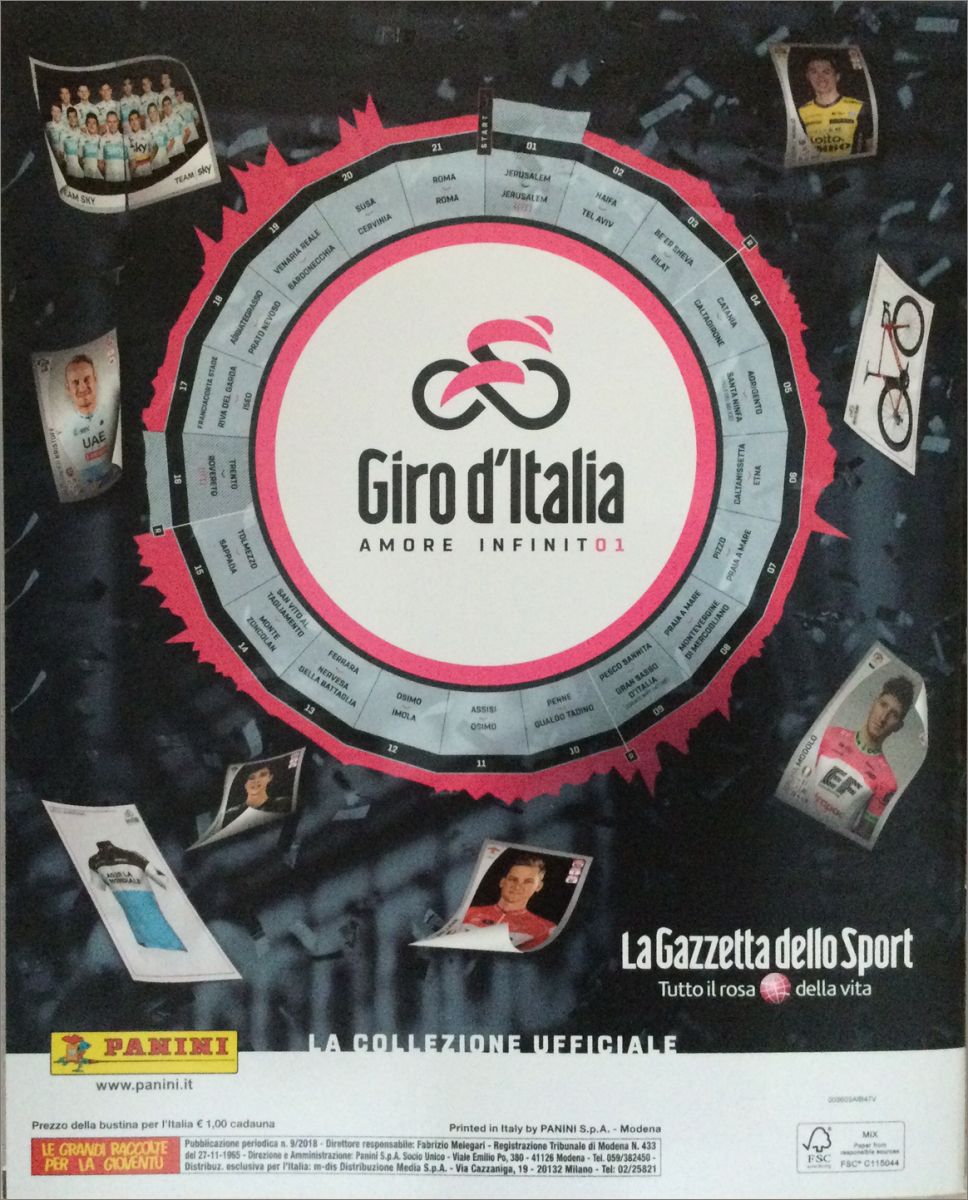 Giro d'Italia 101 - Amore infinito1 Album Panini 2018 Italie