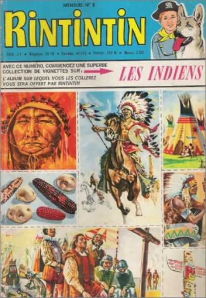 Les Indiens - Album de vignettes - Sagedition - 1960Cet album de 32 pages, au format 27 x 20 cm, ainsi que les 123 images, étaient offerts, au fur et à mesure, en supplément avec le magazine RINTINTIN et RUSTY, série 2.