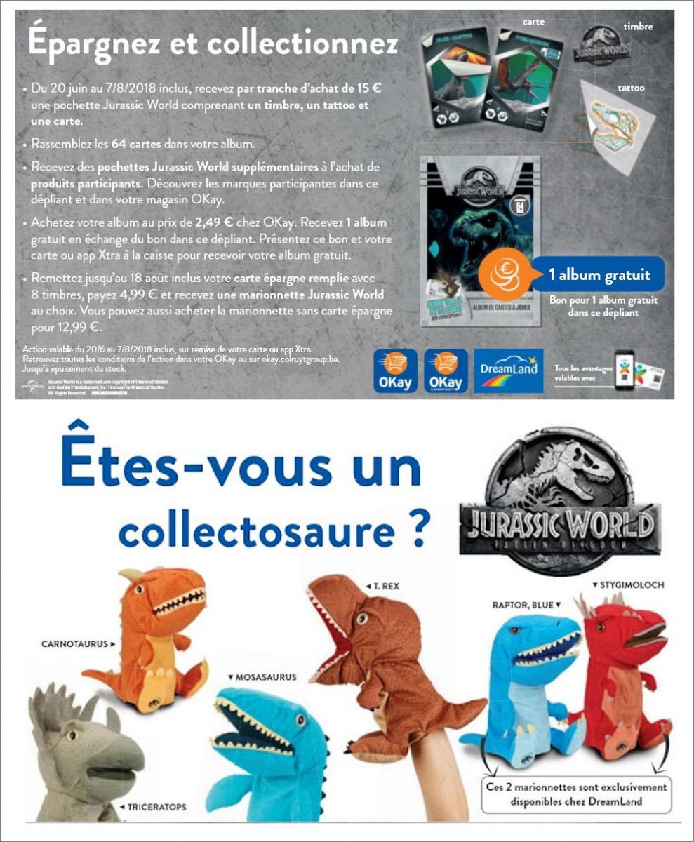 Jurassic World : Fallen Kingdom - Verzamelalbum OKay - 2018Vos pochettes offertes du 20 juin au 7 aout 2018 inclus