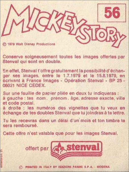 Mickey Story (Walt Disney) - Figurine Panini - Sticker 1979
