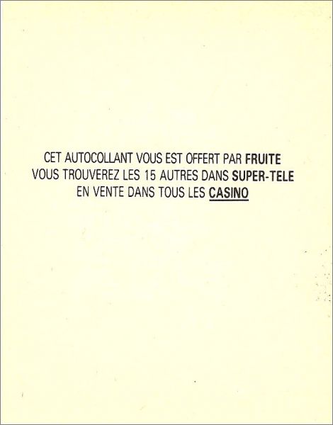 15 images se trouvaient dans le magazine Super-Télé et 1 offert par Fruité (les images se collaient sur un poster carte de France qu'on trouvait aussi dans le magazine Super-Télé)